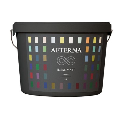 AETERNA IDEAL MATT – экологичная водно-дисперсионная матовая моющаяся краска для защитно-декоративной отделки стен и потолков внутри помещений, в том числе с повышенной эксплуатационной нагрузкой. Благодаря отличной комбинации степени блеска и прочностных характеристик эффективно рассеивает свет, скрывая незначительные дефекты основания, а также обладает повышенной стойкостью к проникновению загрязнителей, лоснению и мытью. 1-й, наивысший класс стойкости к мокрому истиранию по DIN EN 13 300. Обладает превосходной укрывистостью, высокой паропроницаемостью. Экологичная. Содержание летучих органических соединений (VOC) – не больше 30 г/л, в соответствии с европейским стандартом 2004/42/EC.