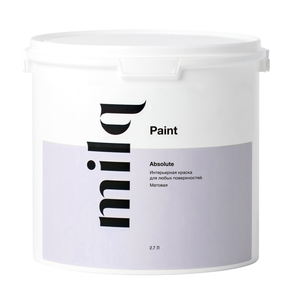 Milq Absolute — интерьерная матовая краска для стен и потолков. Предназначена для помещений с высокой эксплуатационной нагрузкой, в том числе коммерческого назначения (офисы, гостиницы, рестораны и магазины). Подходит для нанесения на оштукатуренные, бетонные, кирпичные, зашпатлеванные поверхности, гипсокартон, обои под покраску.
